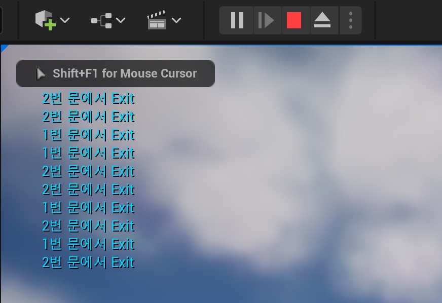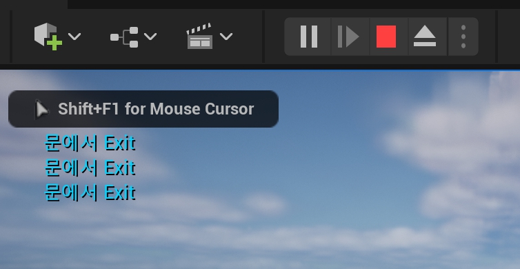 ▣ 씬에서 플레이를 하고 3번 키를 눌러 Close를 하고1번 키를 눌러 Enter를 하면 Exit가 안됩니다.